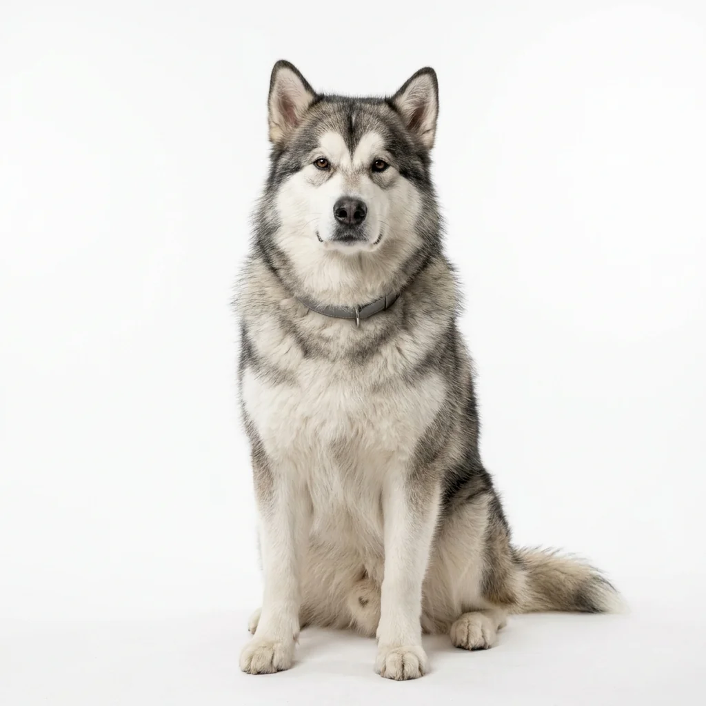 Der Alaskan Malamute ist ein kraftvoller arktischer Schlittenhund, der für lange Strecken und schwere Lasten gezüchtet wurde. Er ist sehr unabhängig und benötigt konsequente Führung.