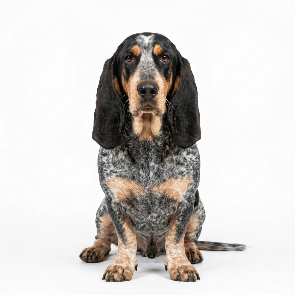 Niederläufige französische Bracke mit bläulich gesprenkeltem Fell und ruhig-freundlichem Wesen. Sie wird zur Niederwildjagd auf Hasen und Kaninchen eingesetzt.