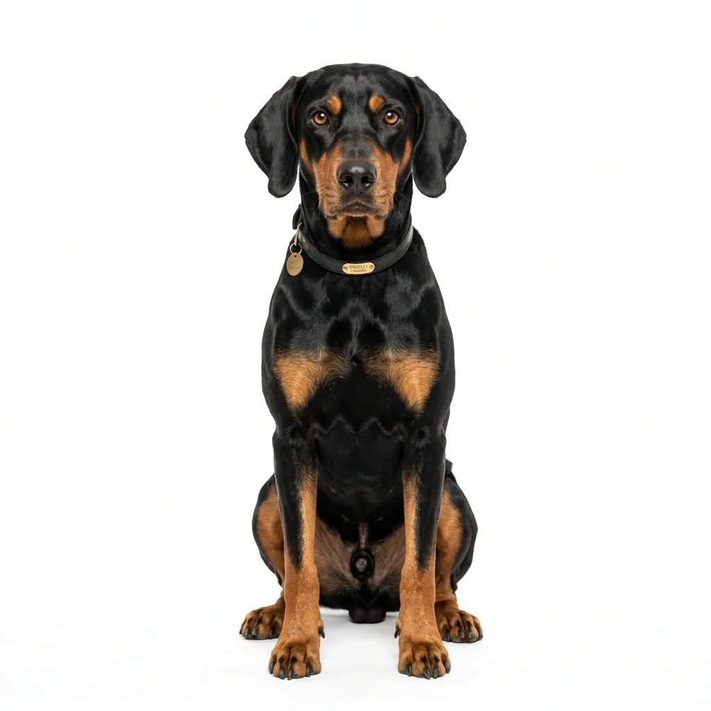 Ungarischer Laufhund aus Siebenbürgen mit schwarz-lohfarbener Zeichnung. Er ist ausdauernd, wetterfest und arbeitsfreudig.