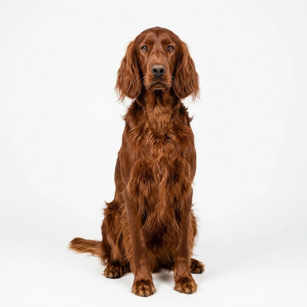 Der Irish Setter ist ein lebhafter, charmanter Jagdhund mit strahlend rotem Fell. Er ist fröhlich, verspielt und reift geistig spät.