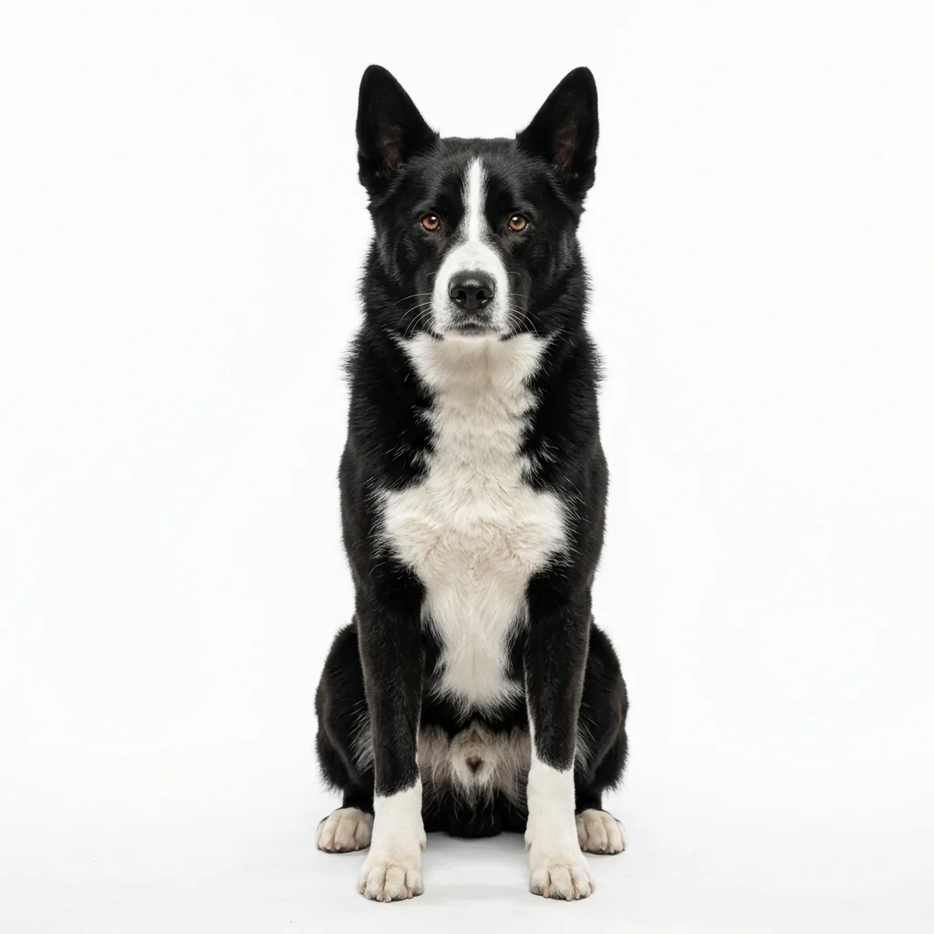 Mittelgroßer nordischer Jagdspitz mit schwarzweißem Fell und selbstständigem, mutigem Wesen. Er wird traditionell zur Bären- und Elchjagd eingesetzt und benötigt jagdliche oder ersatzweise ausgleichende Auslastung.
