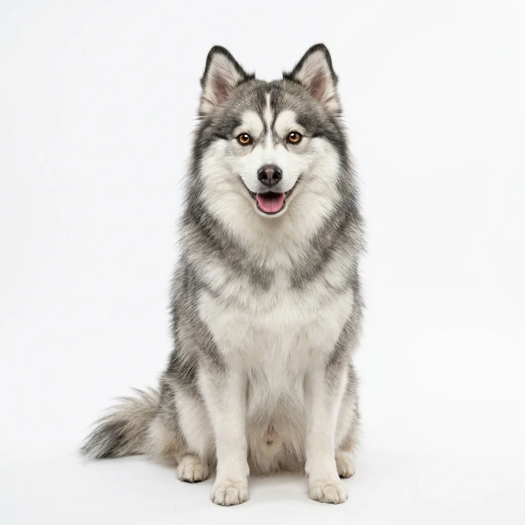 Hybridhund aus Pomeranian und Siberian Husky. Er ist lebhaft, menschenbezogen und zeigt ausgeprägten Bewegungsdrang.