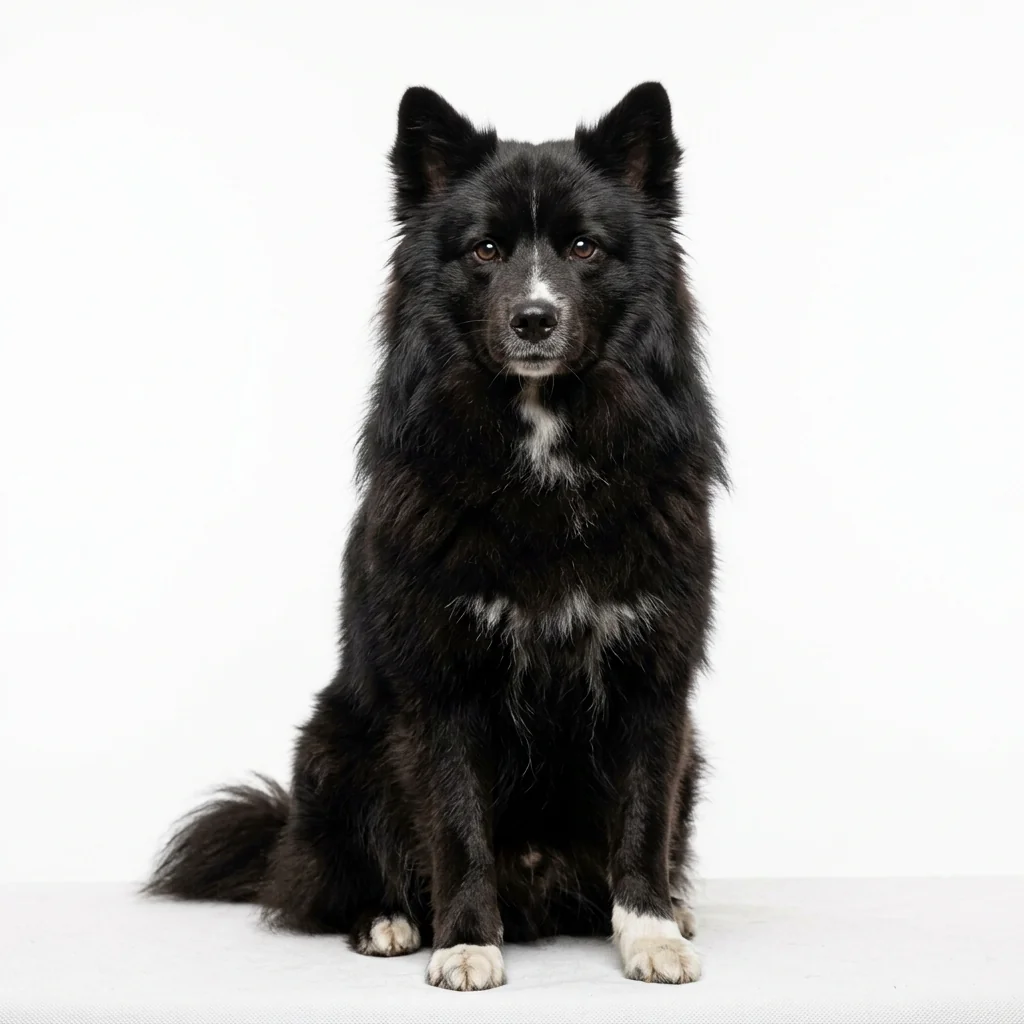 Mittelgroßer nordischer Hütehund mit dichtem schwarzem Fell und lebhaftem, aufmerksamem Wesen. Wird traditionell von den Samen zum Hüten und Treiben von Rentieren eingesetzt.