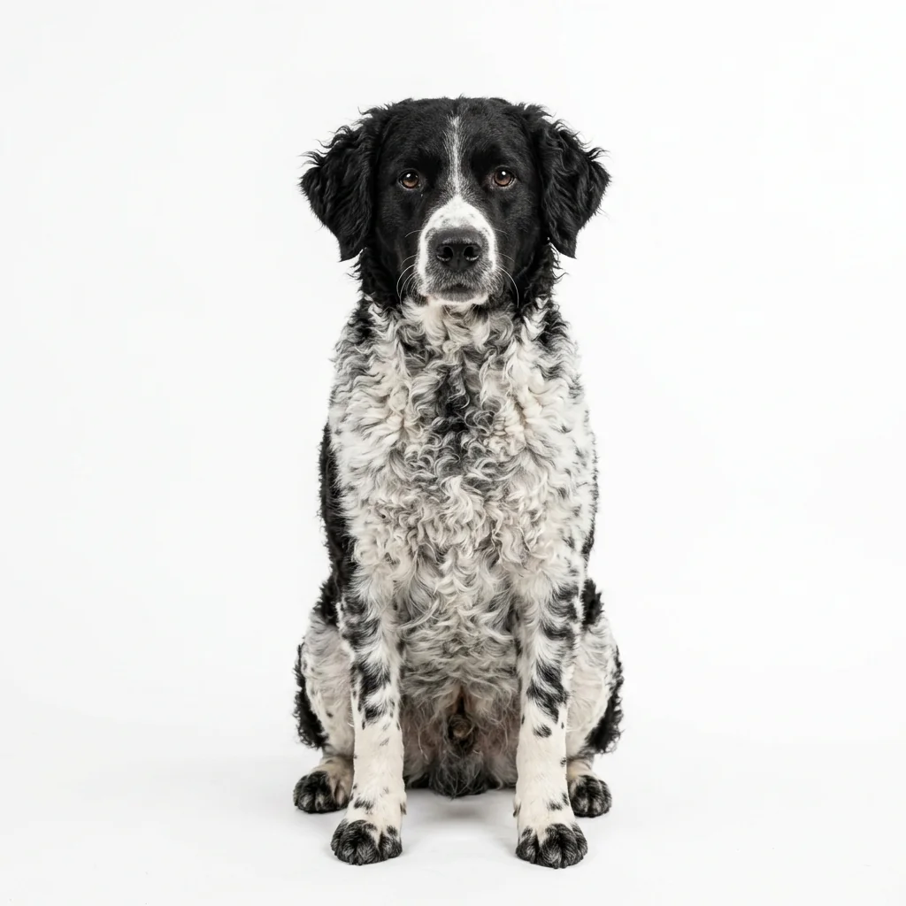 Mittelgroßer, rauhaariger Wasserhund mit gelocktem Fell und ruhig-wachsamem Wesen. Wird traditionell zur Jagd auf Otter und Wasserwild in Friesland eingesetzt.