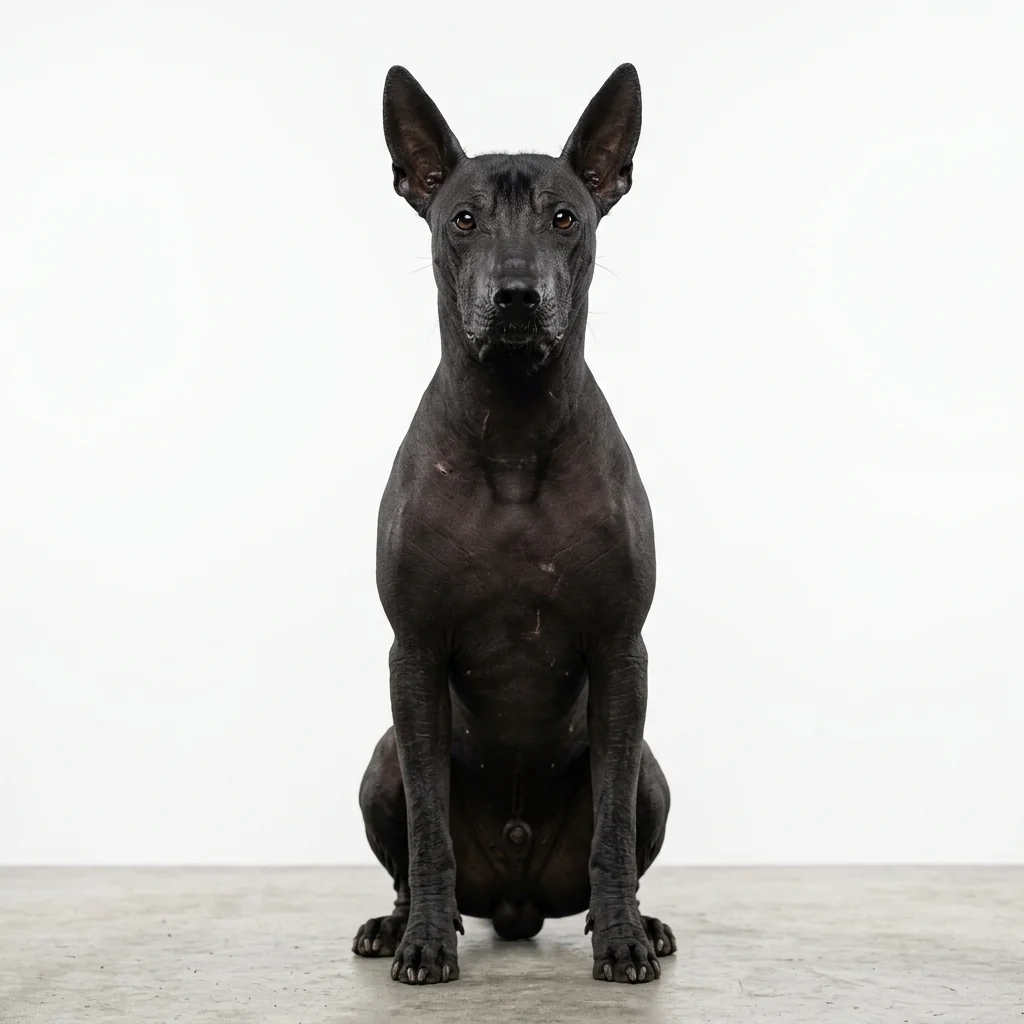 Mexikanischer Nackthund in drei Größenvarianten mit weitgehend haarloser Haut und eleganten Körperformen. Ruhiger Begleithund mit erhöhter Hautpflegeanforderung.